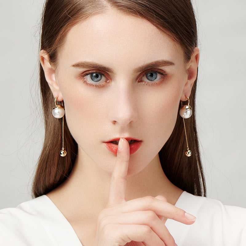 Crafted to be versatile, these earrings are perfect for both day wear and evening attire, adding a subtle hint of luxury to any outfit. Whether you're attending a formal event or dressing up for a casual day, the "Pearl Pendulum Earrings" are sure to turn heads and start conversations.